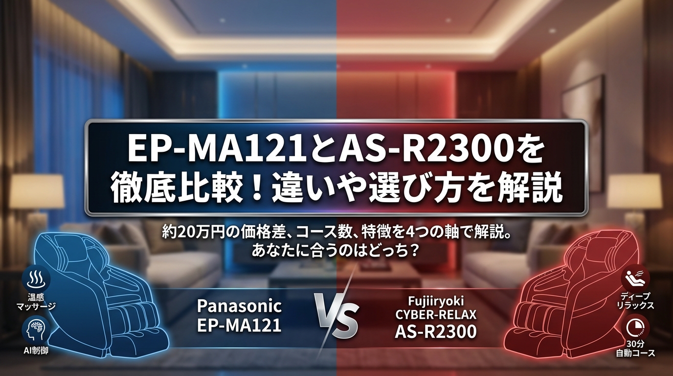 パナソニック「リアルプロ EP-MA121」とフジ医療器「CYBER-RELAX AS-R2300」。 どちらも非常に高額な買い物になるため、購入前の疑問は尽きませんよね。