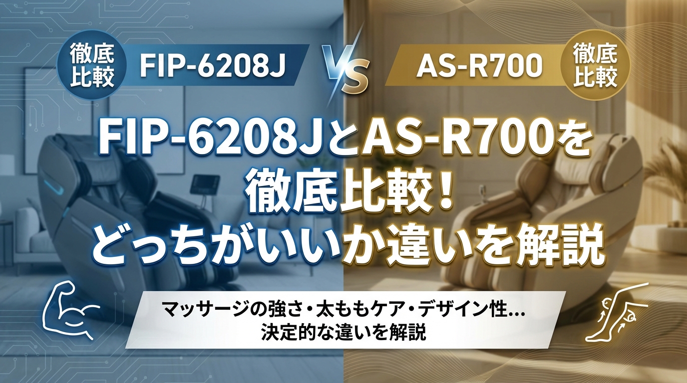 「FIP-6208J」と「AS-R700」、どちらのマッサージチェアを選ぶべきか悩みますよね。 20万円を超える高額家電だからこそ、「思っていた揉み心地と違う」「リビングに置いたら圧迫感がすごい」といった失敗は大きく避けたいはずです。