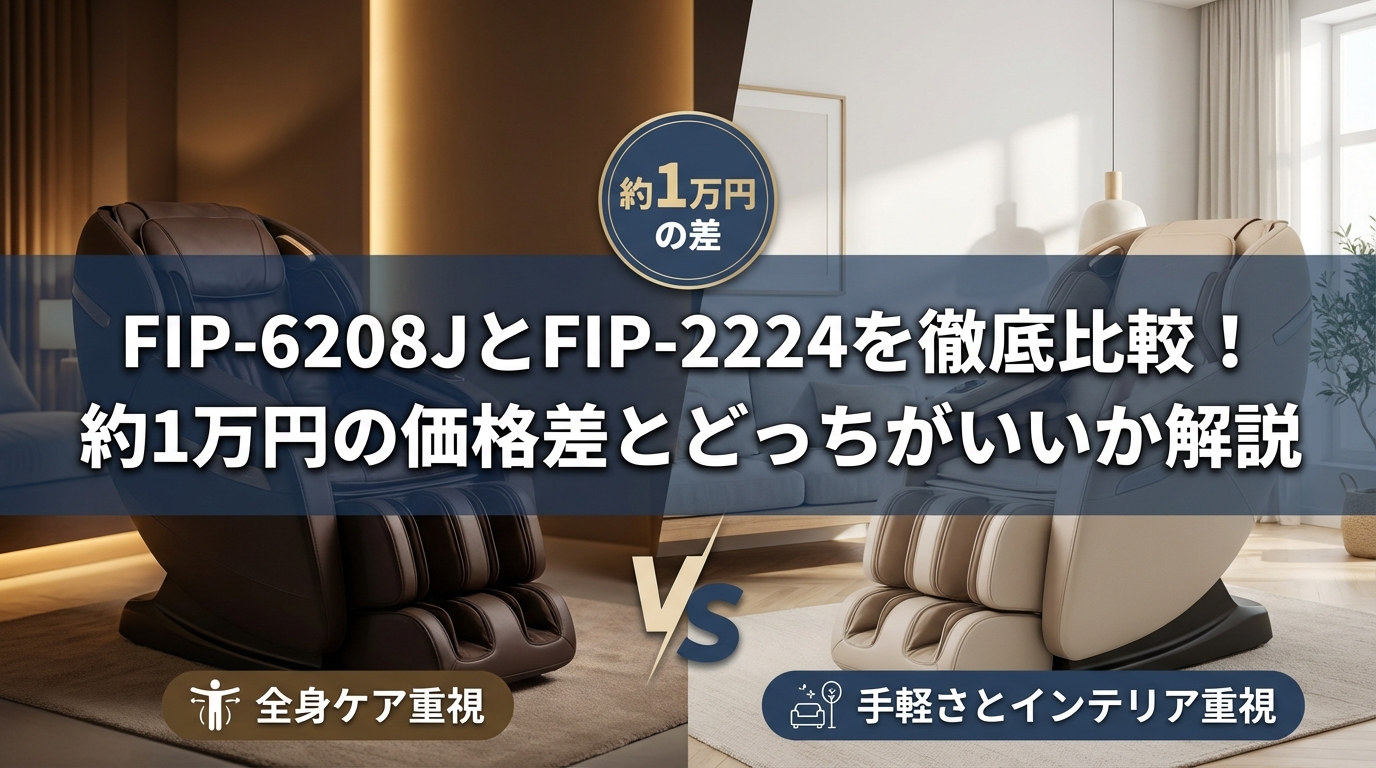 日々の蓄積した疲れを、自宅で本格的にリセットしたい方には、迷わずFIP-6208Jをおすすめします。 約1万円の価格差で、手・腕・足裏までのフルスペックなマッサージ機能が手に入るのは非常に魅力的です。