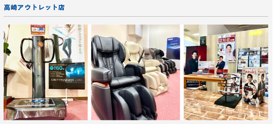 フジ医療器では、お得なアウトレット商品を取り扱う直営アウトレット店を展開しています。